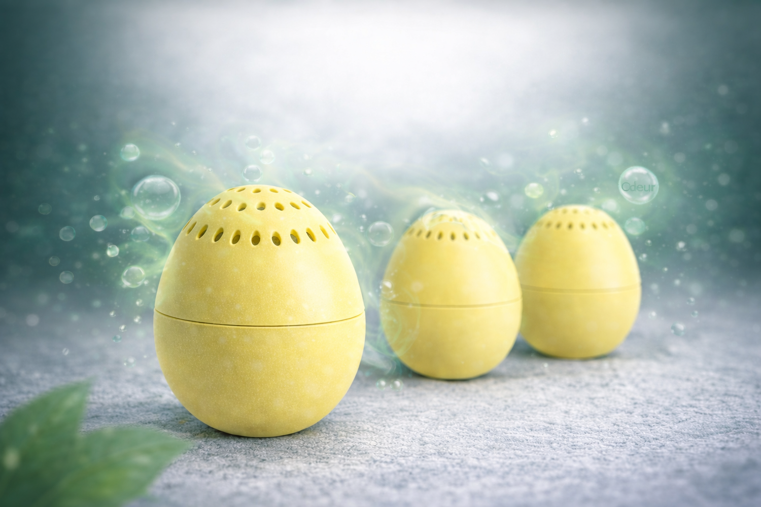 La structure poreuse de notre œuf réutilisable offre une surface d'absorption maximale. Le bicarbonate de soude micronisé pénètre profondément dans les pores pour capturer et neutraliser les molécules d'odeur.